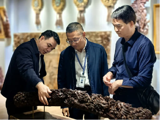在我校领导的陪同下,刘学文校长一行实地参观了我校工艺美术馆。在工艺美术馆内,观赏了师生创作的陶艺、木雕、绘画等艺术作品,对我校将传统文化与艺术教育深度融合的做法赞不绝口,不时驻足询问作品创作理念与教学实践情况。