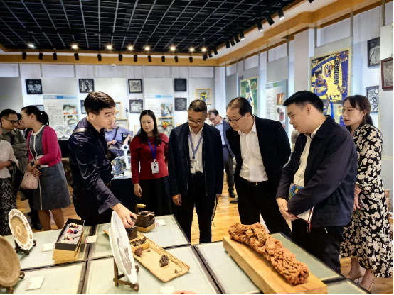 在我校领导的陪同下,刘学文校长一行实地参观了我校工艺美术馆。在工艺美术馆内,观赏了师生创作的陶艺、木雕、绘画等艺术作品,对我校将传统文化与艺术教育深度融合的做法赞不绝口,不时驻足询问作品创作理念与教学实践情况。